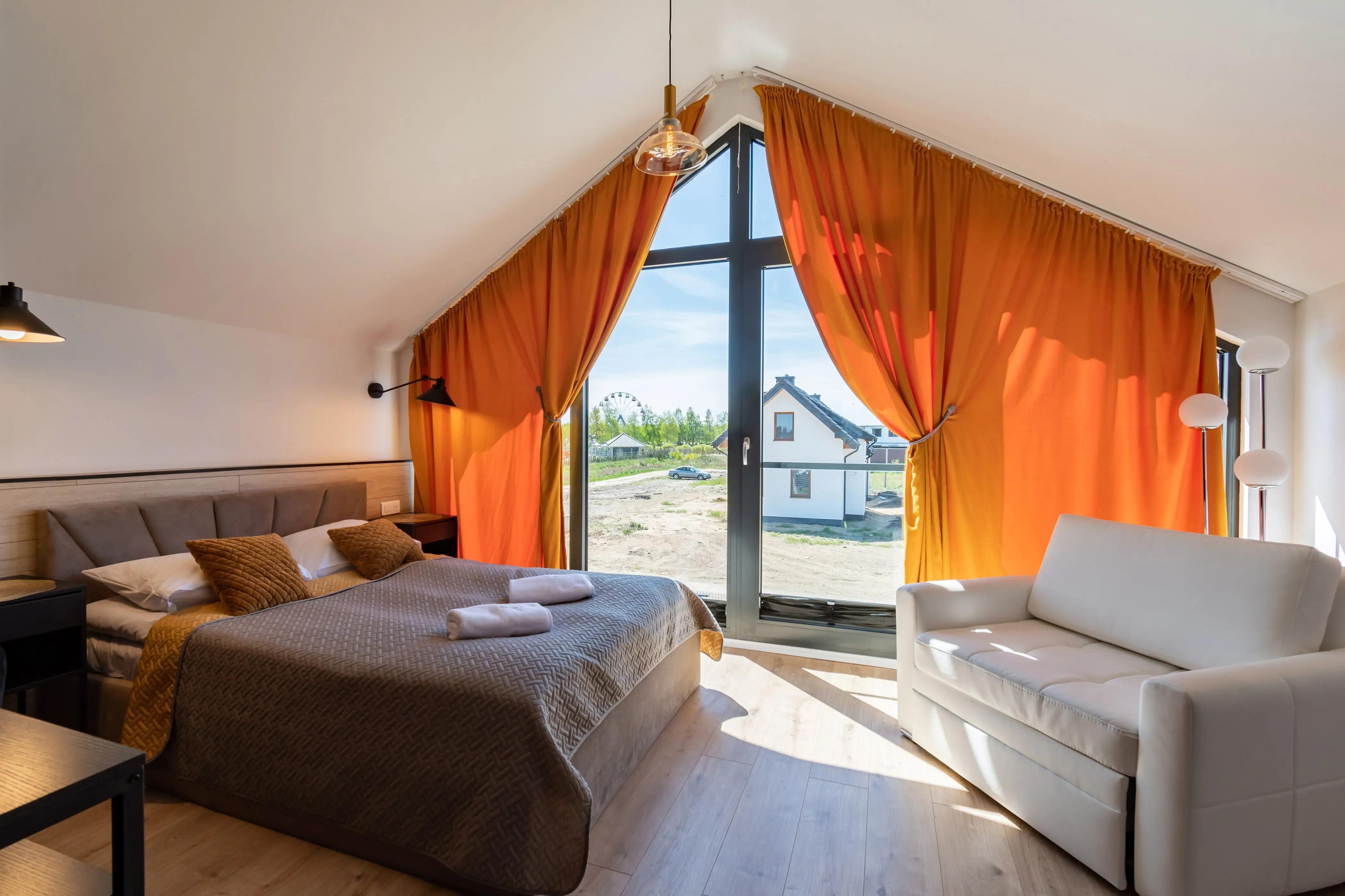 Apartamenty letniskowe posiadają powiększone tarasy, a z uwagi na unikalną architekturę zapewniają jeszcze większą niezależność i intymność podczas spędzania czasu w przynależnym ogródku. To komfort i czas spędzony we własnym towarzystwie. Podwyższony standard wykończenia zwiększa wygodę gości i sprawia, że nasze domki są jeszcze bardziej wygodne.