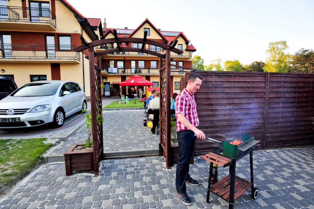 Duża (3000m kw.), słoneczna, zadbana, ukwiecona posesja Rejsu, zachęca do relaksu na świeżym powietrzu. Dla dzieci przygotowaliśmy plac zabaw z piaskownicą pełną morskiego piasku, jak również zjeżdżalnię i bujaki. Dla dorosłych zaś zapewniony został kącik do grillowania. Teren obiektu jest ogrodzony, z możliwością bezpłatnego parkowania wewnątrz posesji. Budynek jest wyposażony w windę