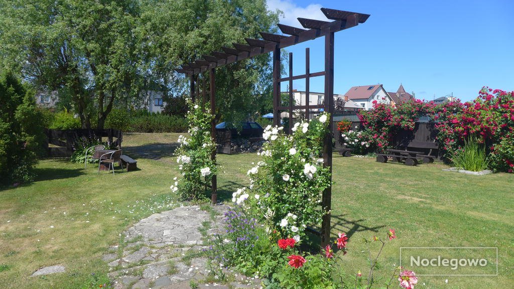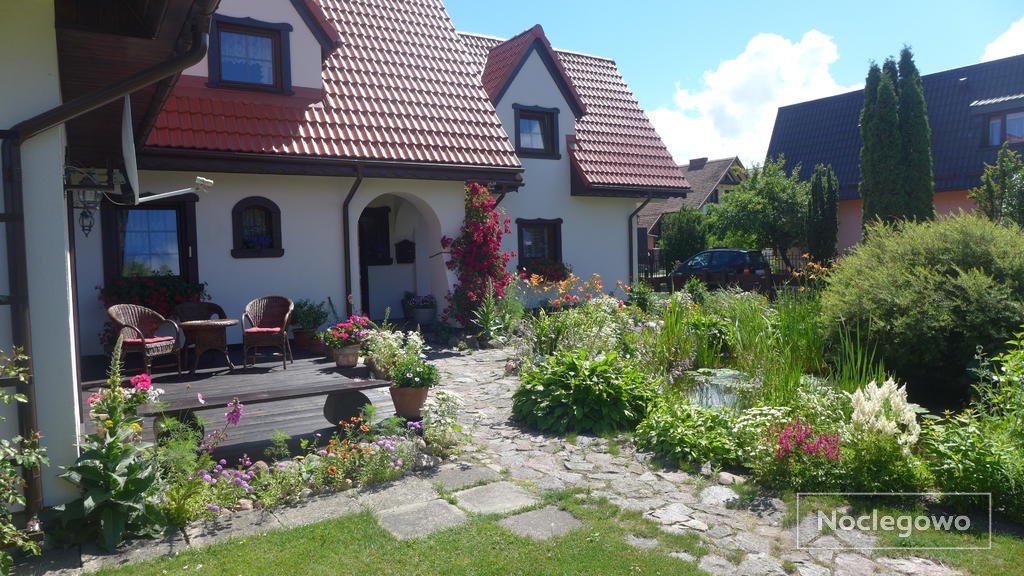 W otoczeniu domu duży ogród ozdobny z kącikami wypoczynkowymi, piaskownicą, oczkiem wodnym i paleniskiem na ognisko. Zmotoryzowanym zapewniamy miejsce parkingowe.