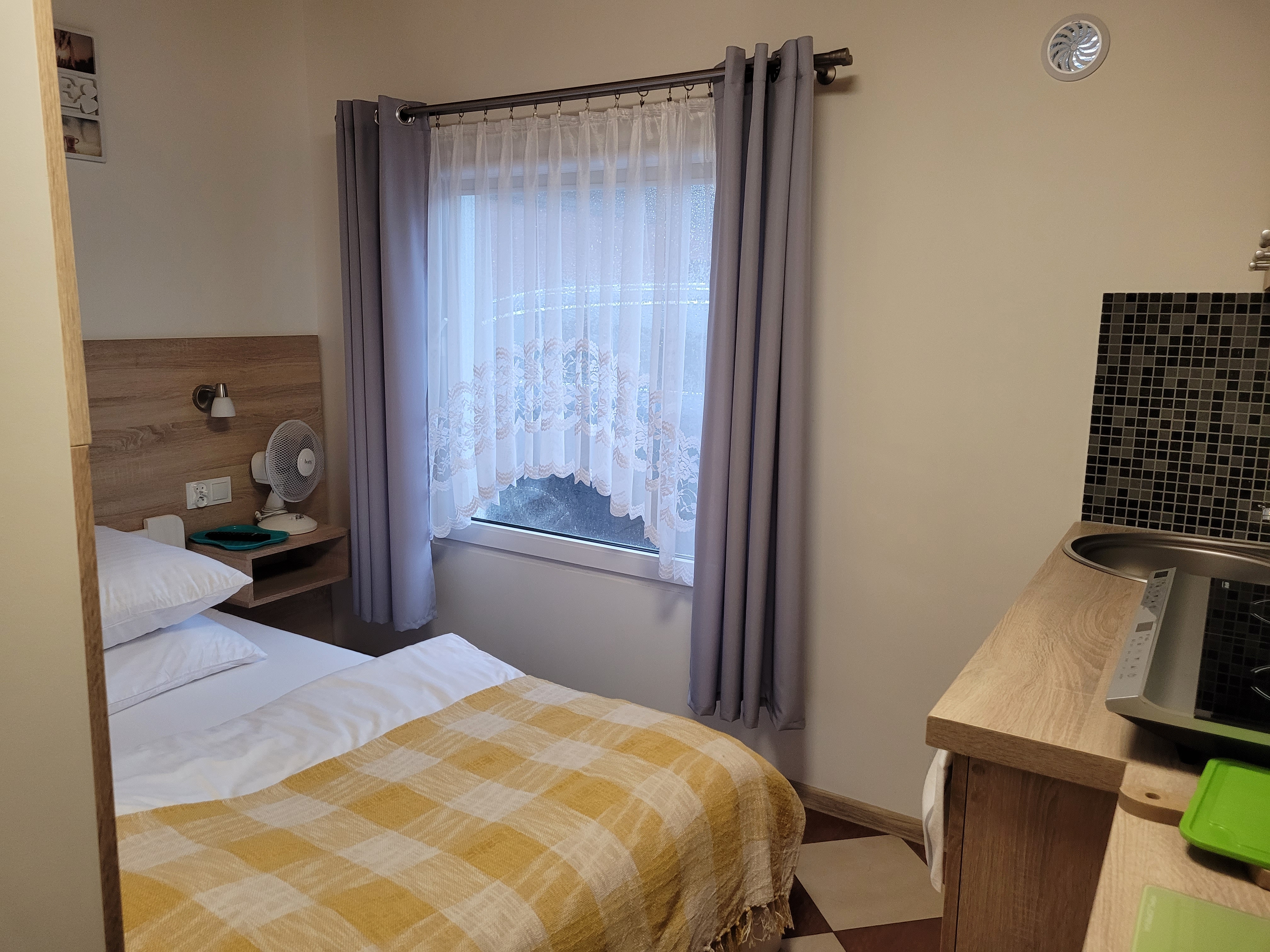 Do dyspozycji gości jest kuchnia z pełnym wyposażeniem, tj. lodówka, kuchenka gazowa i mikrofalowa, expres do kawy oraz naczynia, a także możliwość skorzystania z darmowego Wi-Fi.