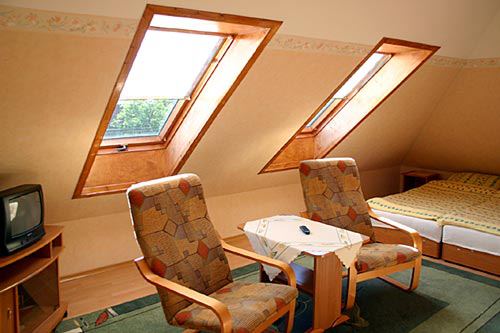 Od plaży dzieli nas 15 minut spaceru, a od centrum miasta 5 minut. Dysponujemy obszernymi pokojami 2, 3 i 4 osobowymi (typu studio) wyposażonymi w TV, łazienkę z natryskiem, niektóre pokoje mają dodatkowo na wyposażeniu lodówki. Poza tym do dyspozycji gości są również parawany. Serdecznie zapraszamy do naszego pensjonatu wszystkich spragnionych prawdziwego odpoczynku.
